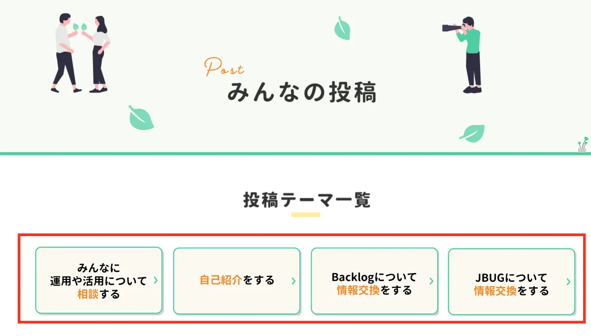 1.みんなの投稿の「投稿テーマ一覧」から投稿したいテーマをクリックします。